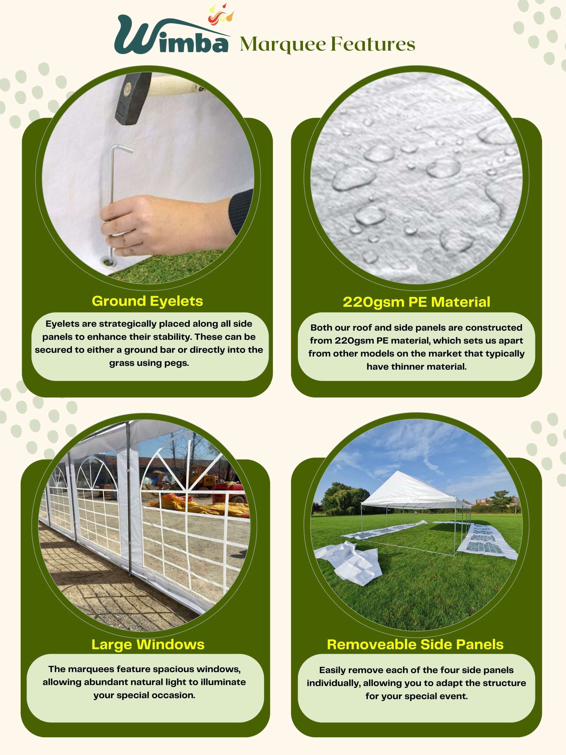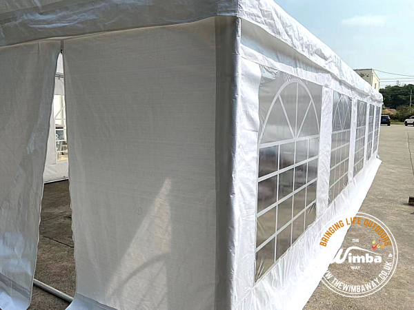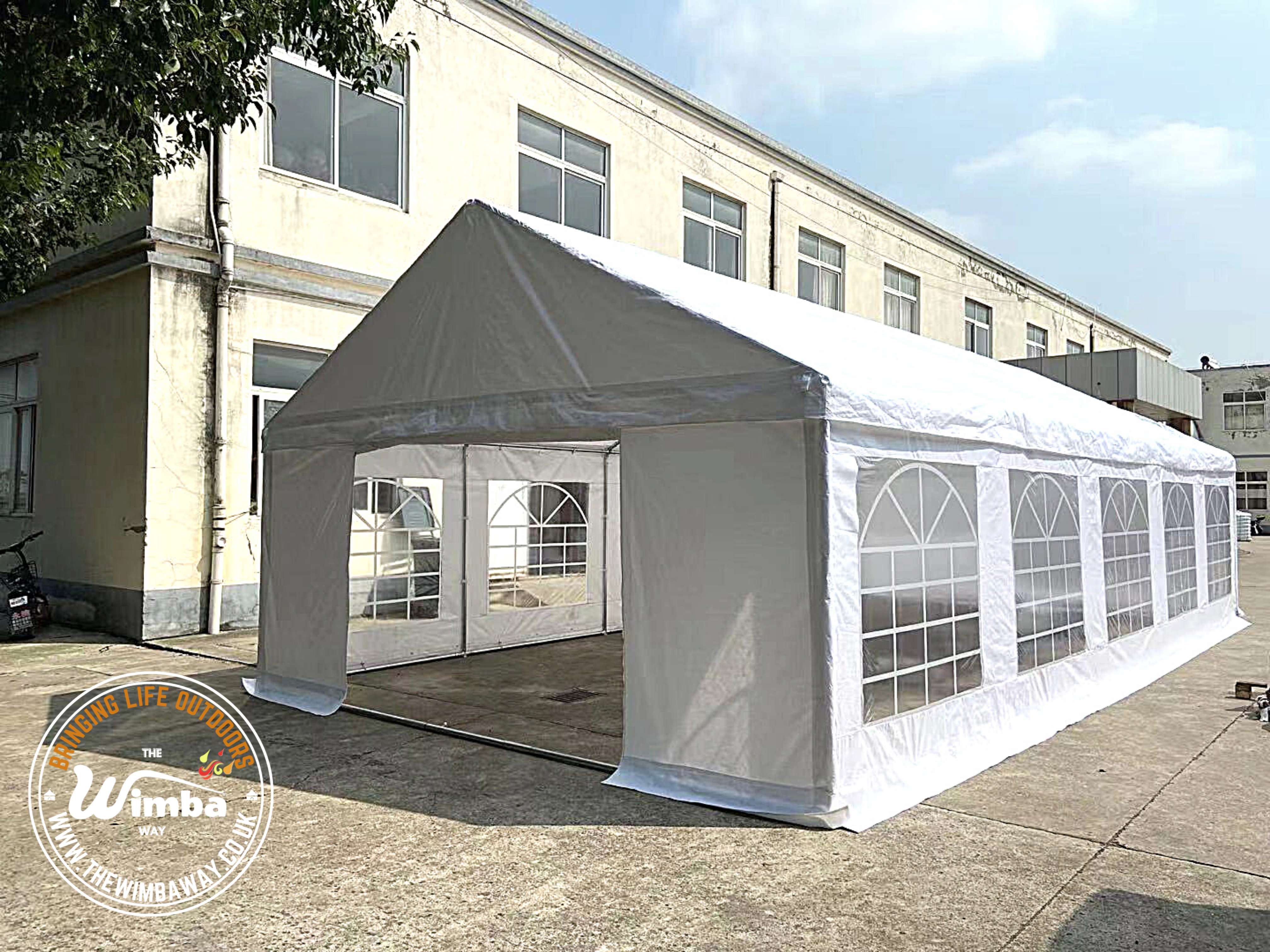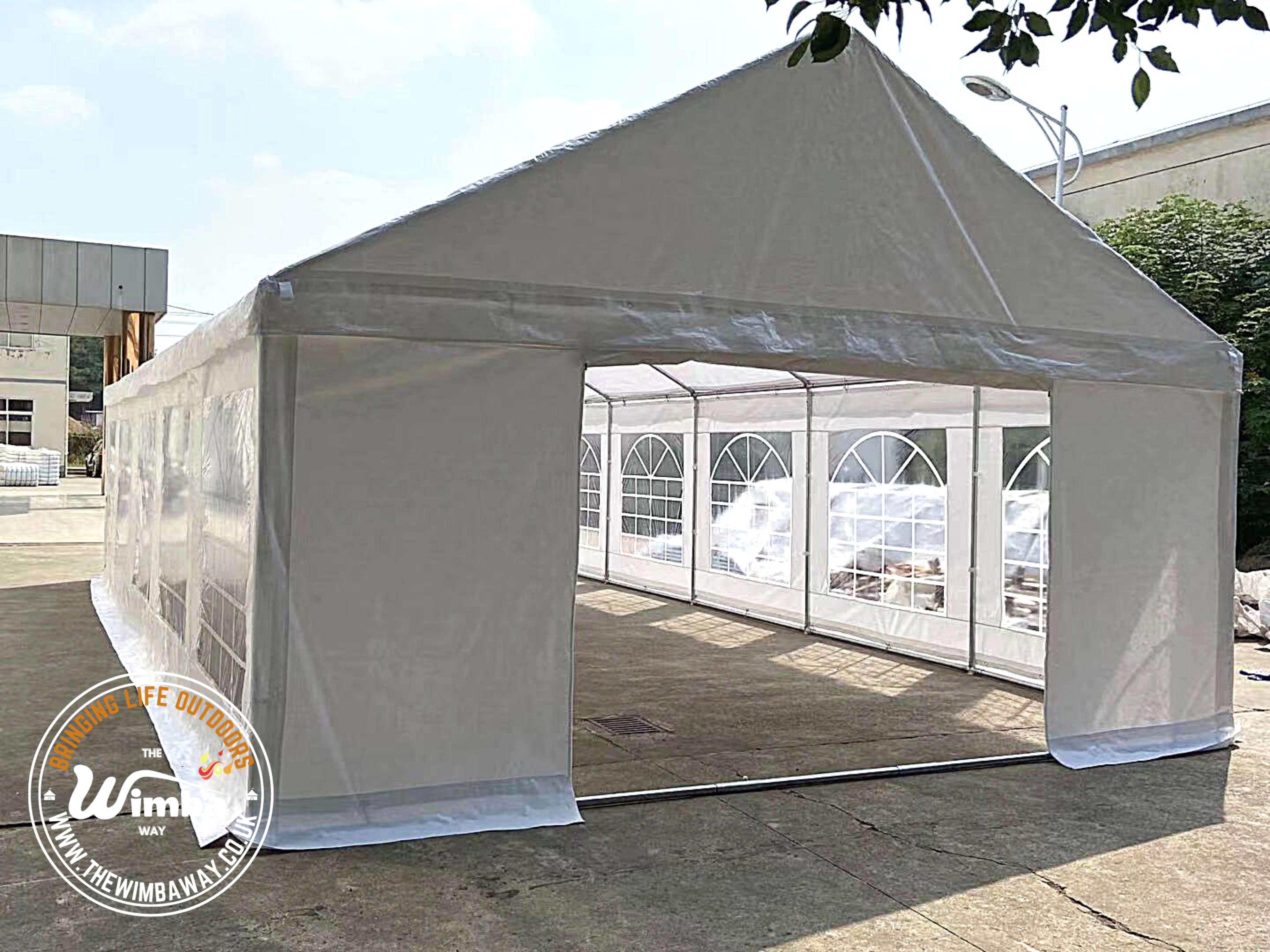 Our Heavy-Duty range is an affordable solution for converting any outside area into your ideal location. Like all our marquees, the frame is made of galvanized steel that is protected against corrosion. This range also comes complete with 220gsm PE tarpaulin for both the roof and side panels.